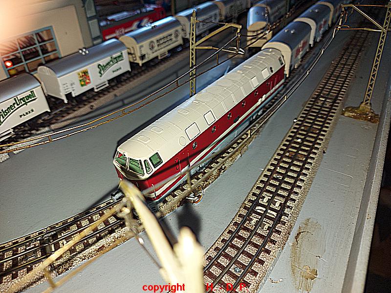 Heute steht mein Spieltag unter dem Motto " Bier her Bier her oder ich fall um " Jetzt werden wohl einige fragen was soll der Scheiß der alte Sack trinkt doch kein Bier. Ja das ist richtig, aber am letzten Freitag wollte ich alle meine Bierwagen mit zum MIST 47 nehmen und die da als langen Zug oder auch 2 Zügen fahren lassen, was aber leider nicht möglich war, da unser Hans - Gerd wegen dem schweren Unwetter nicht kommen konnte und ich meine Schienen nicht innerhalb von wenigen Stunden noch sortieren und reinigen konnte. Aus dem Grund habe ich jetzt einmal alle meine 56 Bierwagen in Heinhausen fahren lassen.