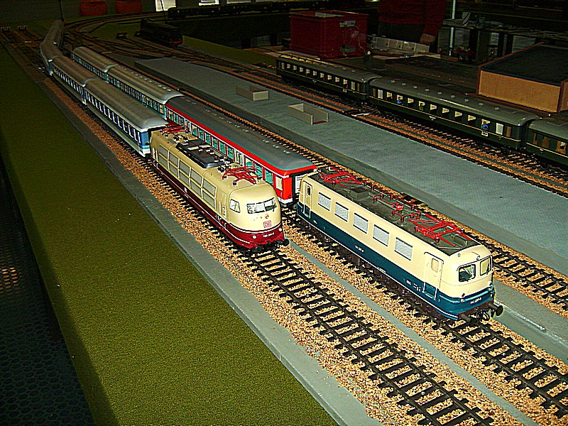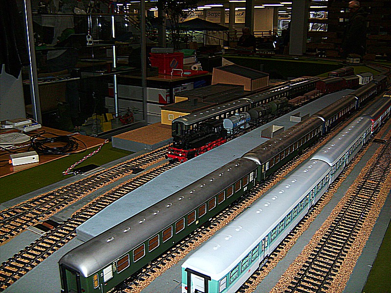 Beginnen möchte ich natürlich mit der Modellbahn und da mit der großen Spur 1 Anlage der Eisenbahn-Modellbau-Club Gelsenkirchen-Buer-Resse 1980 e.V. Diese Modulanlage wird oft auf Ausstellungen gezeigt. Einige Loks sind Eigenbauten, so z.B. die BR 19 um hier nur eine von vielen zu nennen.