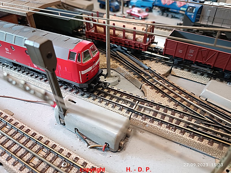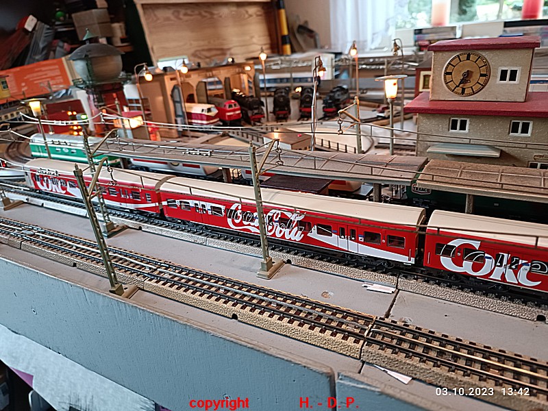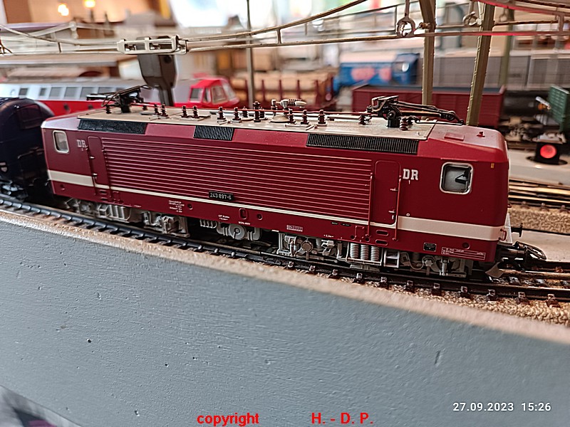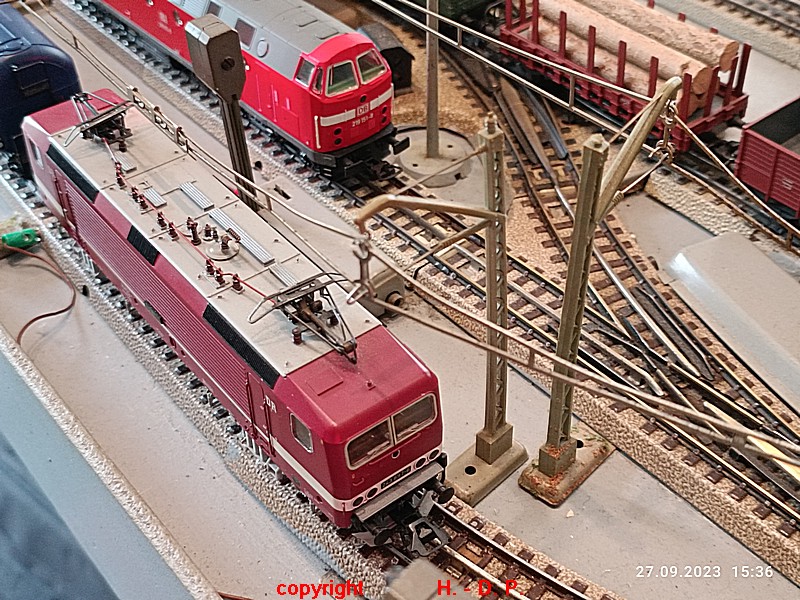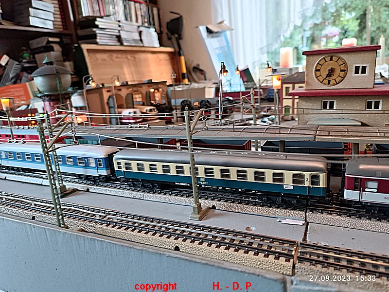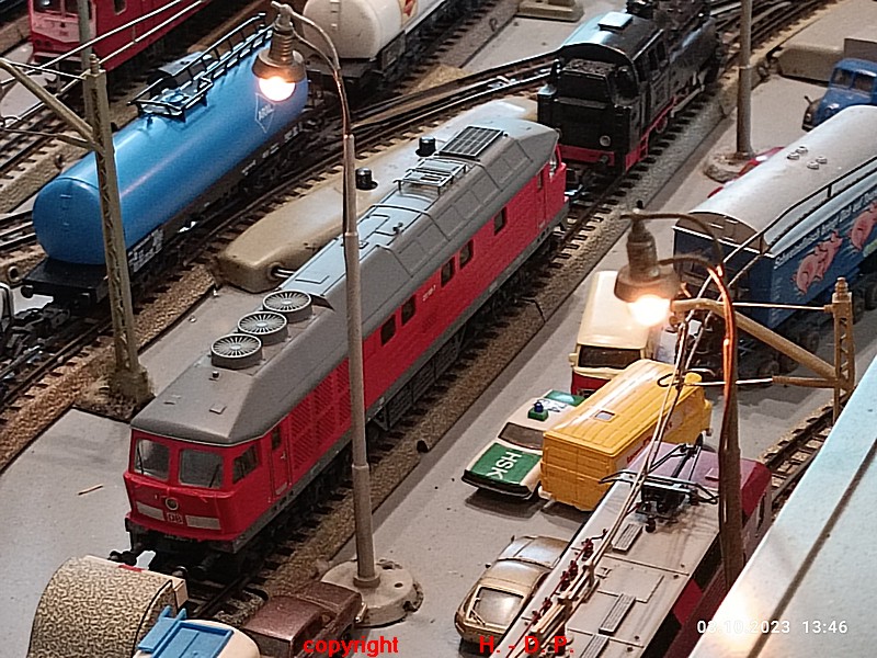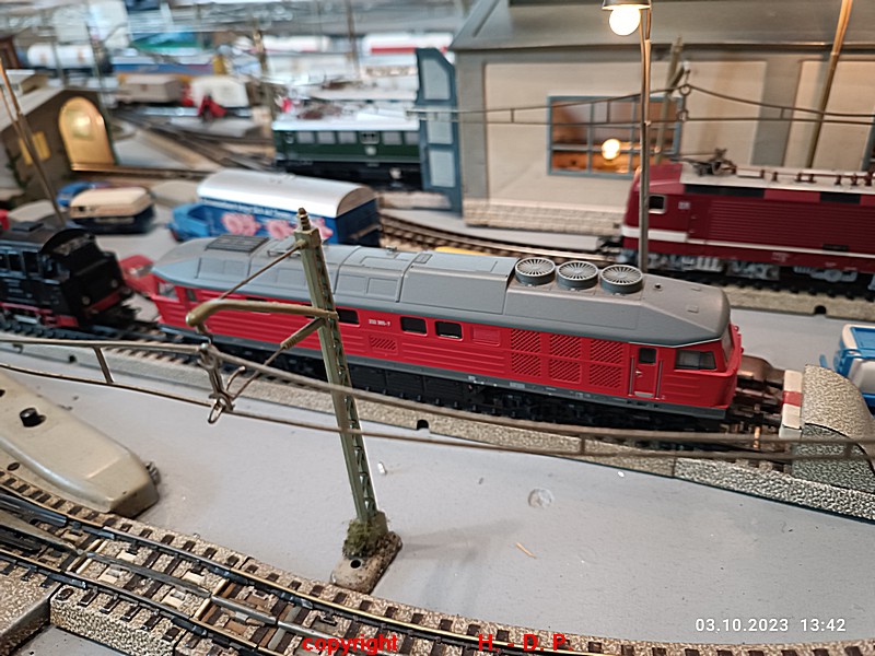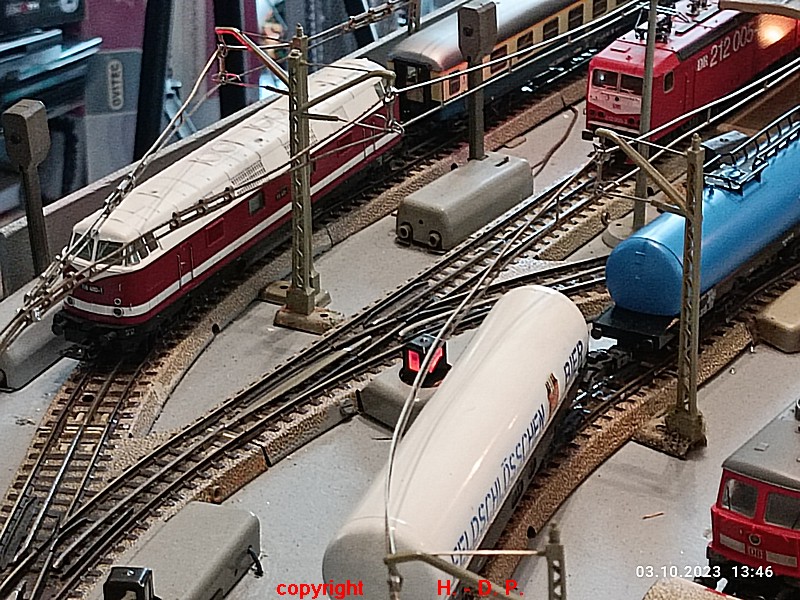 Die Spieltage über die ich heute berichten möchte standen unter dem Motto " Ex DDR und Russen Power " und es fuhren auch nur die Loks die dem Motto entsprachen. Die Loks stammten von den Firmen Märklin und Piko und die Wagen waren von den Firmen Hag und Märklin. In Ermangelung von DR Personen - Schnellzug Wagen Wagen habe ich natürlich Wagen der DB benutzt, denn Personenwagen der R haben mich an sich nie wirklich interessiert, was bei Loks doch anders war.