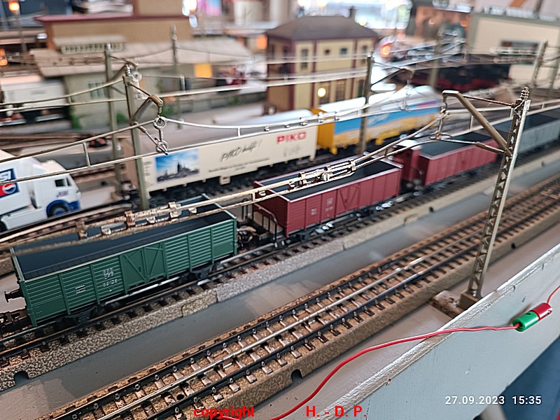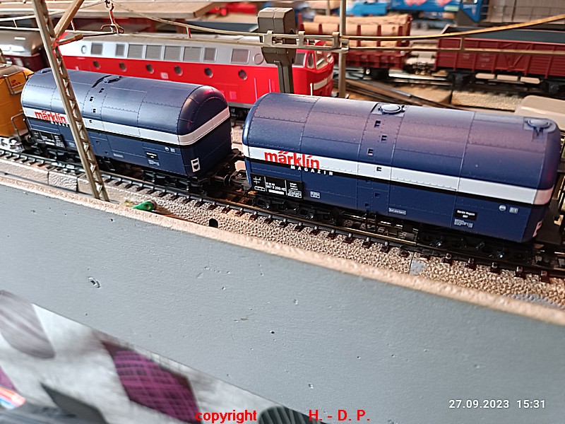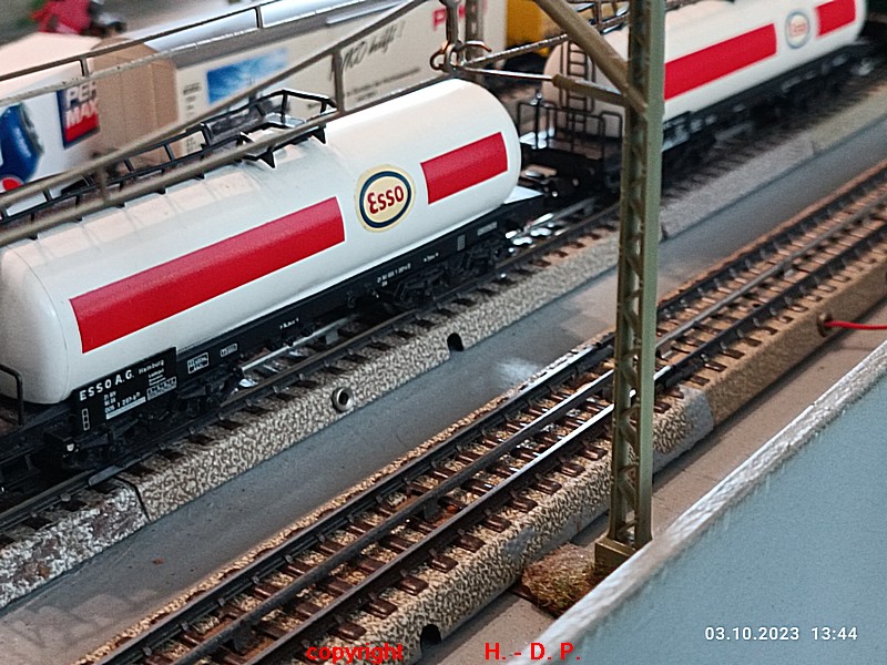 Bei den Güterwagen kamen auch wieder meine absoluten Lieblings Wagen, die Schwerölwagen zum Einsatz, denn da gab es vor einiger Zeit einen Neuzugang und der Zug besteht jetzt aus insgesamt 12 Wagen, wovon aber nur 11 zu sehen sind. Der 12. Wagen, ein 4621 in grau, habe ich leider noch nicht gefunden.