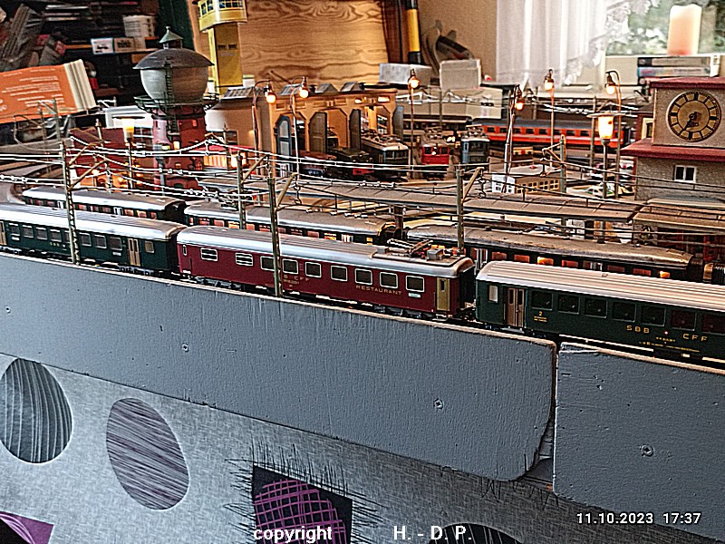 Die Loks stammen von den Firmen Märklin und Hag und von diesen beiden Firmen stammten auch alle Wagen.