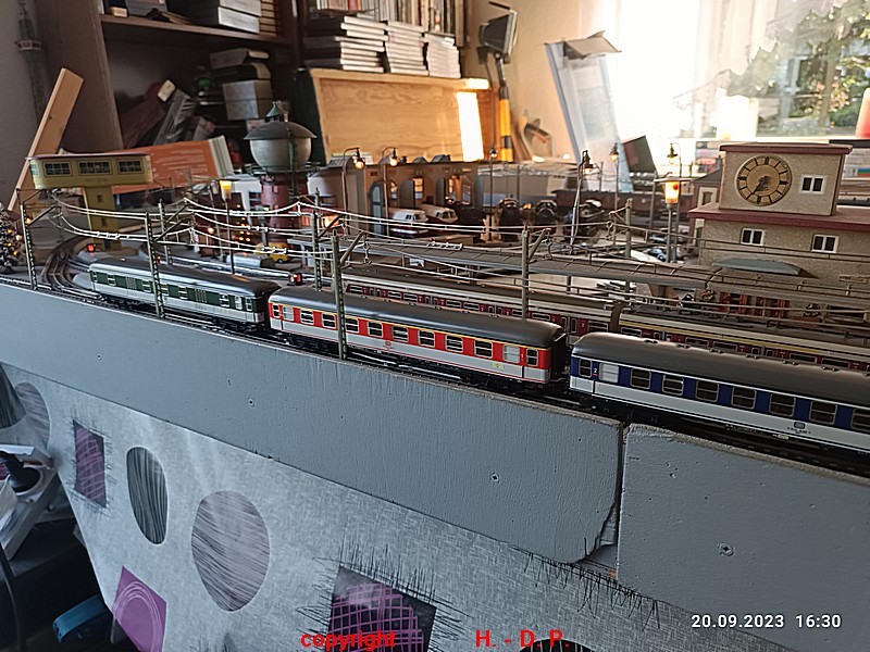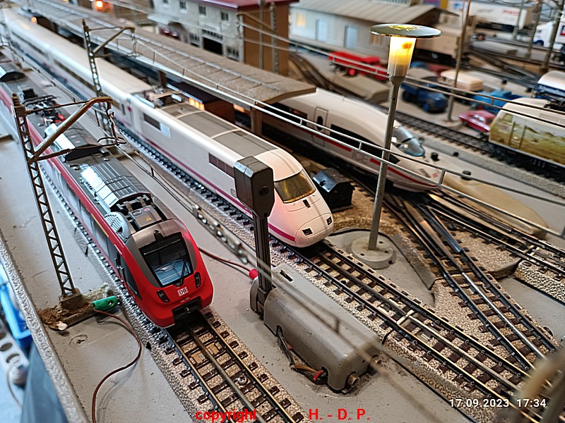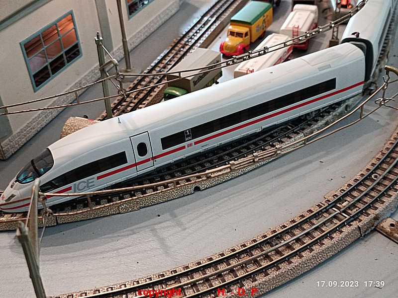 Das Motto meiner neuesten Spieltage lautet " Züge in Heinhausen die ich besonders mag Teil 2 " Bisher gab es bei meinen Spieltagen fast immer Loks und Züge zu sehen, die Ländertypisch waren,. So hatte ich Spieltage der SBB, NS, SNCB usw. jetzt und bei den nächsten Spieltagen möchte ich Euch die Züge zeigen die ich ganz besonders mag und da ich ein reiner Spielbahner bin ist es mir auch vollkommen egal ob alles Epochengerecht ist oder nicht. Wie Ihr hier sehen könnt, gefallen mir auch moderne Züge sehr gut.