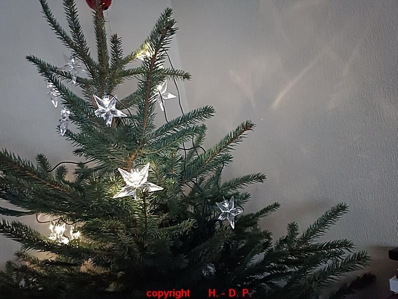 Wie man sehen kann passt der Baum hervorragend zwischen Wand und Sideboard. In den letzten Jahren mnßte der immer richtigrein gequetscht werden, allerdings passen in diesem Jahr leider keine 60 Kugeln an den Baum. Meinem Bein ging es am Sonntag uns Montag schon wieder etwas besser, so das ich ohne Rollator durch die Wohnung gehen kann und dann hat Frauchen am Dienstag die Kugeln aus dem Keller geholt und ich habe den Baum geschmückt und ich konnte sogar auf eine Leiter steigen, denn ohne Leiter konnte ich die Kugelspitze leider nicht anbringen und auch die Leuchtsterne die oben unter der Spitze hängen, denn normale kerzen kann man da nicht gerade anbringen.
