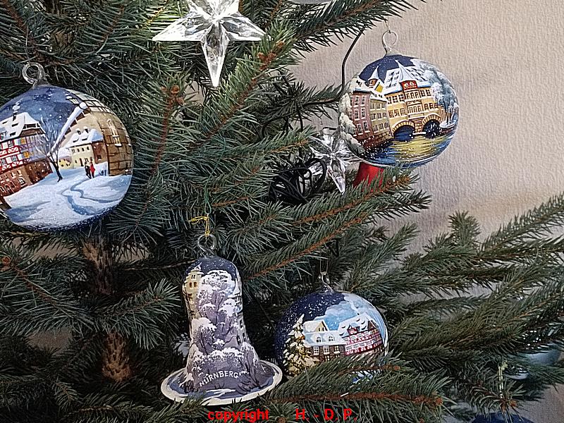 ![]() rechts oben die für mich schönste Kugel mit Nürnberger Motiv |