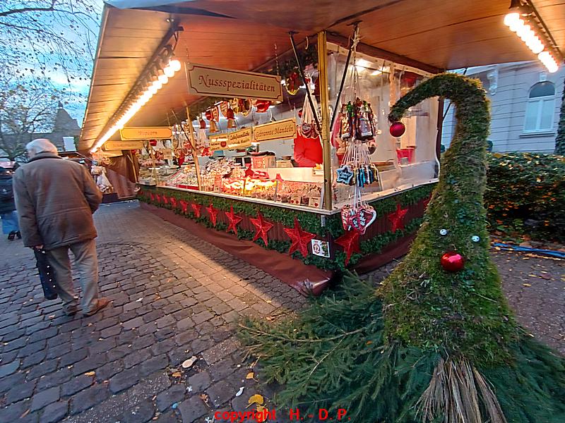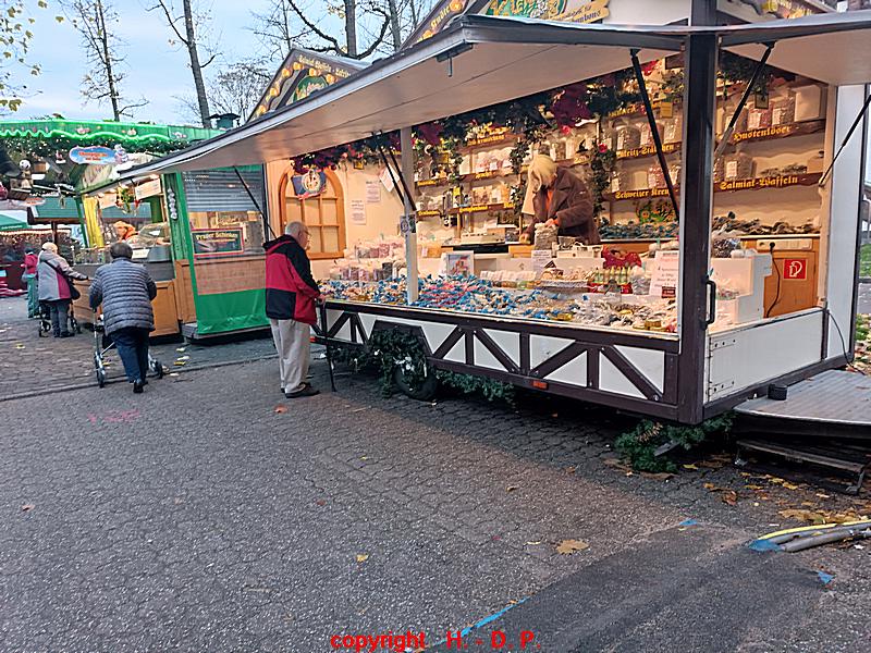 In diesem Jahr fehlte sogar der Eingangsbogen zum Weihnachtsmarkt und dahinter begann noch im Jahr 2019 der Weihnachtsmarkt, in diesem Jahr fehlten auch die Buden und nur ein Kinderkarussell war da wo es immer stand, nur in diesem Jahr einsam  und verlassen. Es fehlt auch ein Bäcker der immer sehr leckere Krapfen verkaufte und der auf dem Markt stand solange ich zurück denken kann. Insgesamt waren viel weniger Buden aufgebaut als noch im Jahr 2019 und  da waren es schon weniger als in den Jahren davor. Auch fehlte  eben fast alles was Weihnachten ausmacht bis auf wenige Buden die etwas anboten das man als weihnachtlich ansehen konnte.
