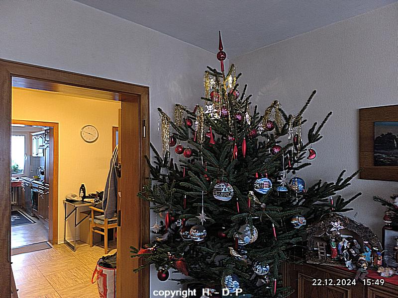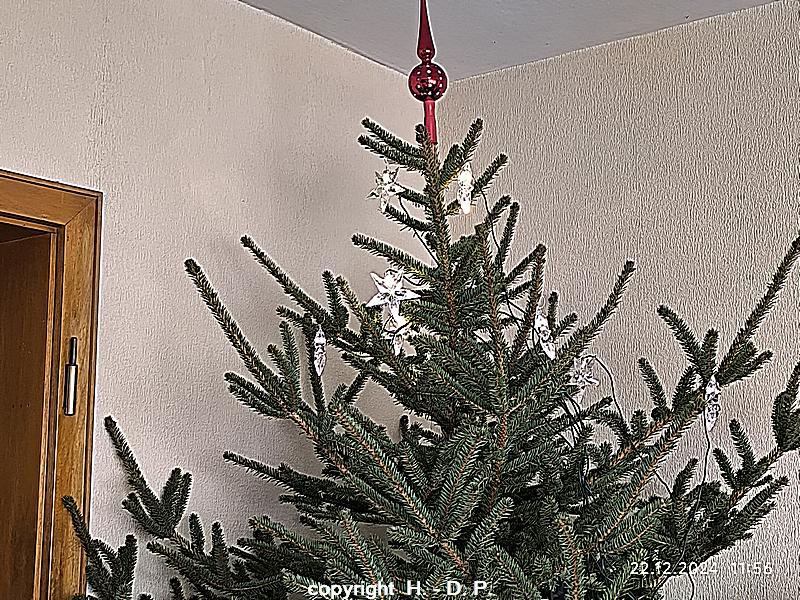 normal haben wir unseren Baum in jedem Jahr am 17.12 in die Diele geholt damit er Zeit hat sich ohne Netz auszuhängen, doch in diesem Jahr war es  leider anders, denn am 17.12 mußten wir unsere treue Begleiterin Lady im Alter von 19 Jahren einschläfern lassen und danach stand uns nicht mehr der Sinn nach Weihnachten und Weihnachtsbaum. Da der Baum allerdings nun mal da wr haben wir den dann am 20.12. in die Diele gestellt, vom Netz befreit und dann bis  zum 22.12. stehen lassen.