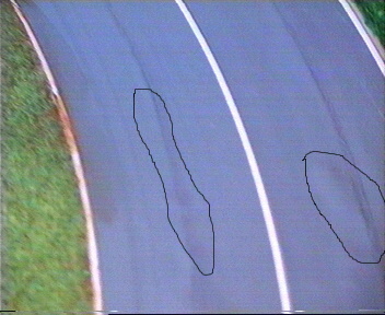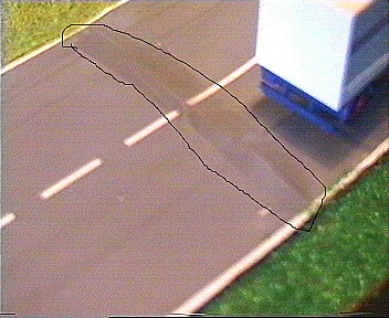 deutlich zu erkennen der Tesastreifen über der Fahrbahn