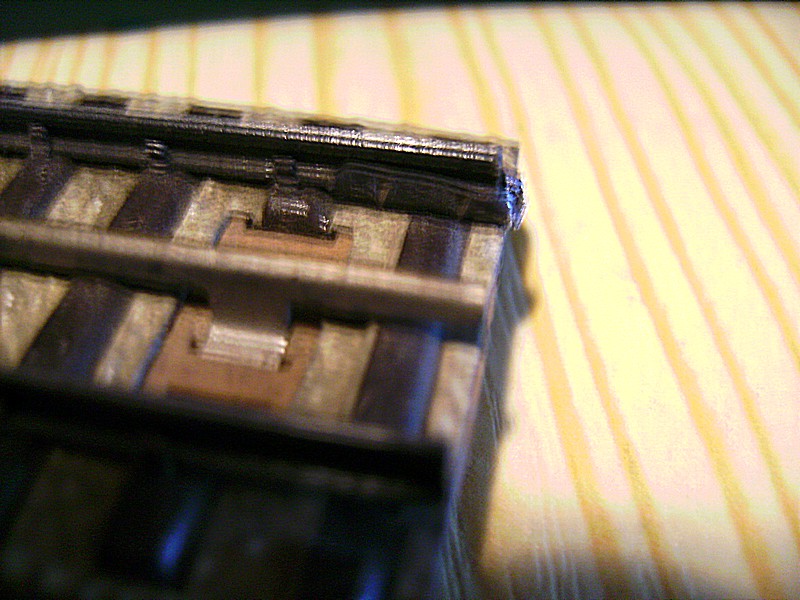 Die Kabel wurden auf dem kürzesten Weg verlegt, aber doch so, das kein Kabel durchhängt. So habe ich heute mal eben 16 Kabel für die Weichen und DKW`s, ein Licht Kabel und 4 rote Strom Kabel, für die schaltbaren Anstellgleise, verlegt. Danach wurde die Platte wieder richtig rum auf die Unterlage gelegt und dabei mußte ich feststellen, das an zwei Weichen und einer DKW das Licht nicht brennt, es ist wohl eine Birne kaputt. Auch habe ich noch Schwierigkeiten mit einer Weiche, die nicht abschaltet und bei einer DKW geht nur ein Teil das andere leider nicht. Hier muß wohl mal ein Fachmann dran um das zu reparieren. Dann habe ich noch, heute erst an einem Gleis, den Mittelleiter rausgebrochen und den Schienenverbinder entfernt.