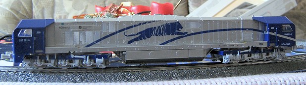 Sonst macht das Modell einen recht guten Eindruck auch das Gewicht ist ganz ordentlich. Das ist ein erster kurzer Bericht über den Blue Tiger, wie er sich im täglichen "Einsatz" bewährt werde ich später einmal berichten, auch was die Zugkraft angeht. Die Beleuchtung wechselt übrigens von 3 x Weiß auf 2 x rot, was aber nur sehr schwach scheint, aber man kann es sehen.