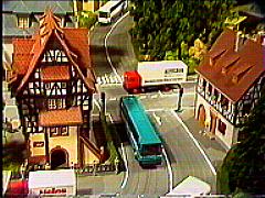 Wenn Sie in eine bestehende Anlage den besonderen Pfiff mit selbstfahrenden Autos einbringen möchten, sollten Sie die Möglichkeit mit dem Fahrdraht wählen. Damit können Sie individuelle Radien bauen und brauchen nur den Mindestradius beachten. Ob Sie nun Ihre Straßen einspurig oder mehrspurig bauen, hängt davon ab wie breit die vorhandene Straße ist. Um ein Fahren in beide Richtungen zu ermöglichen, brauchen Sie eine Breite von ca. 10 - 12 cm.