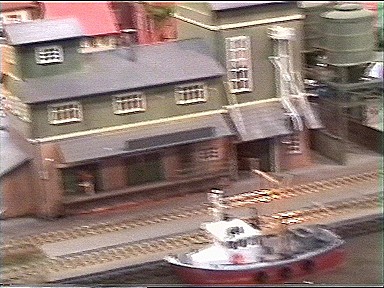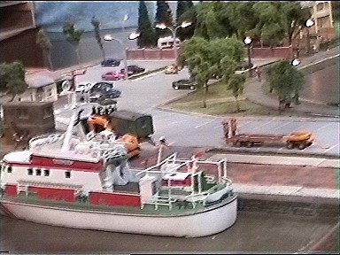 die nächsten Bilder zeigen noch eine Hafenanlage und eine eine Holzeisenbahn, wo auch die Schienen aus Holz bestehen