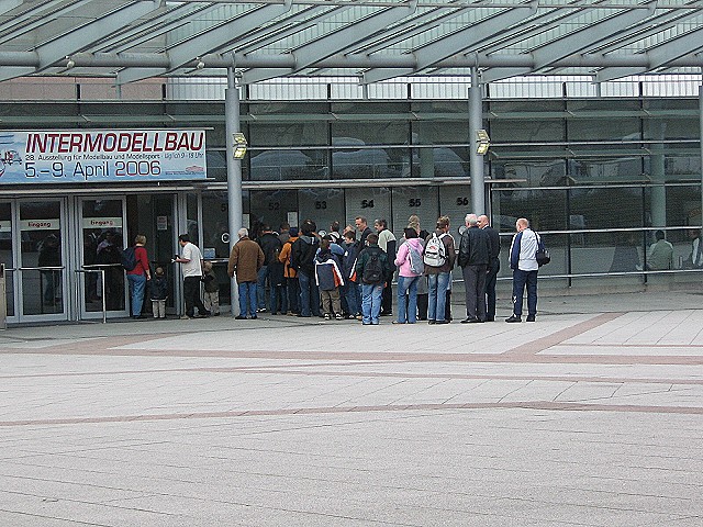 So mit diesen Bildern ist mein Messerundgang der Intermodellbau 2006 beendet. Gegen 11:30 Uhr wurde es in den Hallen so voll, das ich raus mußte, doch was sich draußen abspielte ist nicht zu beschreiben. Einige Bilder davon habe ich noch gemacht. Dann mußten wir 30 Minuten bis zum Auto laufen und dabei erleben die Autoschlange vom Parkplatz bis weit aus Dortmund hinaus ging. Ich glaube das einige wohl erst nach einigen Stunden in die schon sehr volle Halle gehen konnten.