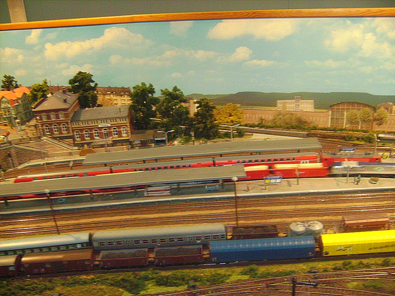 Zu den Anlagen muß ich sagen das die an sich nicht schlecht waren aber es fehlte eine Anlage wo man sagen könnte woh das ist es. Auch gab es sehr viele kleine Anlagen Dioramen zu sehen. Die Anlage des Modellbau Team Köln z.B. hätte der Höhepunkt sein können, wenn dort nur etwas mehr Zugbetrieb zu sehen gewesen wäre. Diese an , sich recht hohe Anlage war wohl für die Firma Bemo gebaut, hatte aber trotz der Größe nur ein Gleis drauf das zu einem Bahnhof in ungefähr Anlagen Mitte führte zu einem kleinen Bahnhof mit Ausweichgleis. es fuhren dort nur zwei Züge und das fand ich persönlich etwas wenig, denn sonst gab es dort nur Landschaft zu sehen, die aber natürlich in hervorragender Qualität gebaut war, so wie man es von den Kölnern gewohnt ist.
