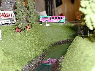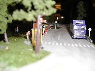 Thomas hatte auch einige Besonderheiten zu zeigen, so z.B. ein Leiterwagen der Feuerwehr ( Eigenbau ) mit Blinkelektronik und einen Bus mit Scheinwerfer und Rücklicht.