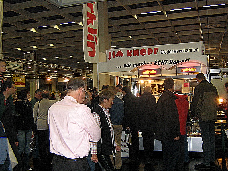Die Letzten Bilder stammen von den Echtdampf Freunden, die sich wohl sehr verloren vorkamen denn es war dort recht leer. Eine Außnahme gab es aber und zwar der Stand von Jim Knopf war proppevoll.und die beiden Verkäufer hatte alle Hände voll zu tun. Ca. 90 % der gezeigten Ware war Märklin HO der Rest Märklin Spur 1