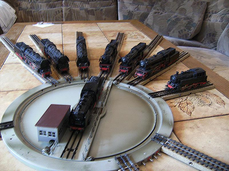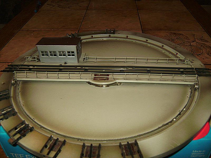 Zwei Leute aus dem Forum Alte Modellbahnen, haben mir einige alte M-Gleise kostenlos geschickt, dafür noch einmal meinen herzlichen Dank, die restlichen Gleise habe ich mir über Ebay besorgt. Nachdem diese Gleise bei mir eingetroffen waren, habe ich meine alte "Tellermine", auch Drehscheibe genannt, aus dem Keller geholt, wo sie jetzt seit 1986 geschlafen hatte. Nur das Stellpult konnte ich leider nicht mehr finden, aber ich habe es auch über ein normales altes Drucktastenstellpult geschafft der Tellermine neues Leben ein zu hauchen. Natürlich wurde die sofort auf meinem Wohnzimmertisch aufgebaut, mit Schienen versehen und alte Loks draufgestellt. Es war für mich als alten Nostalgiker ein herrliches Bild.