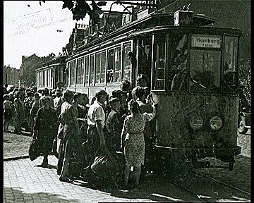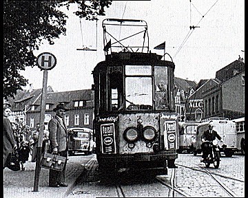 Ein weiteres Verkehrsmittel war die "Elektrische" ( Straßenbahn ) die ca. 50 Jahre lang das Stadtbild prägte. Die Straßenbahn entstand aus einer Eisenbahnverbindung von Homberg nach Moers im Jahre 1908. Diese Straßenbahnlinie bestand noch bis 1953, später verlängert bis Duisburg-Ruhrort und hat den Menschen in und um Moers geholfen mobil zu werden.