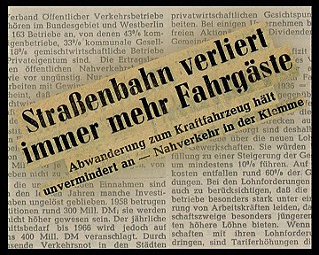 Das steigende Verkehrsaufkommen im privaten Autoverkehr, sowie eines immer besser ausgebauten Busverkehrs machte der Straßenbahn das Leben schwer. Insbesondere aber waren die Straßenbahnfahrzeuge durch den Treibstoffmangel im 2. Weltkrieg über Gebühr beansprucht worden und dadurch verschlissen, was einen erheblichen finanziellen Aufwand bedeutet hätte diesen zu modernisieren und das bei ständig sinkenden Fahrgastzahlen. Das führte zum endgültigen AUS aller Straßenbahnlinien in Moers im Jahre 1963. Damit verschwand dieses öffentliche Verkehrsmittel aus dem Straßenbild von Moers am 3. 11.1963.