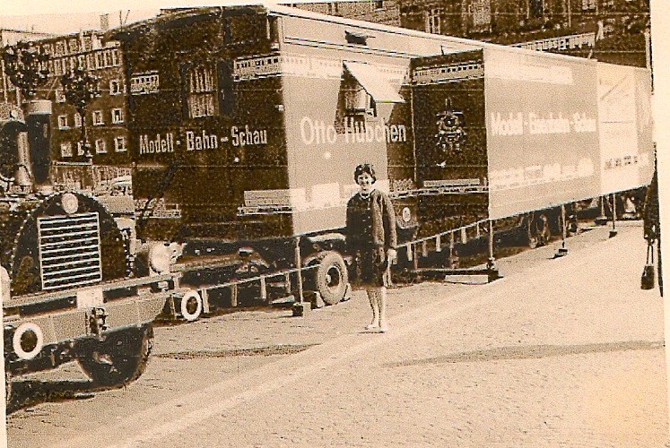 Im Jahre 1962 erfolgte der Umbau der Anlage auf das Fleischmann System, bei gleichem Gleisplan. Auch der Wagen wurde von außen verändert, der Holzaufbau wurde mit Metallplatten verkleidet. Damit fuhr Otto Hübchen bis zum Jahr 1969 durch die Lande. Hier auch noch 2 Bilder der Fleischmann Anlage