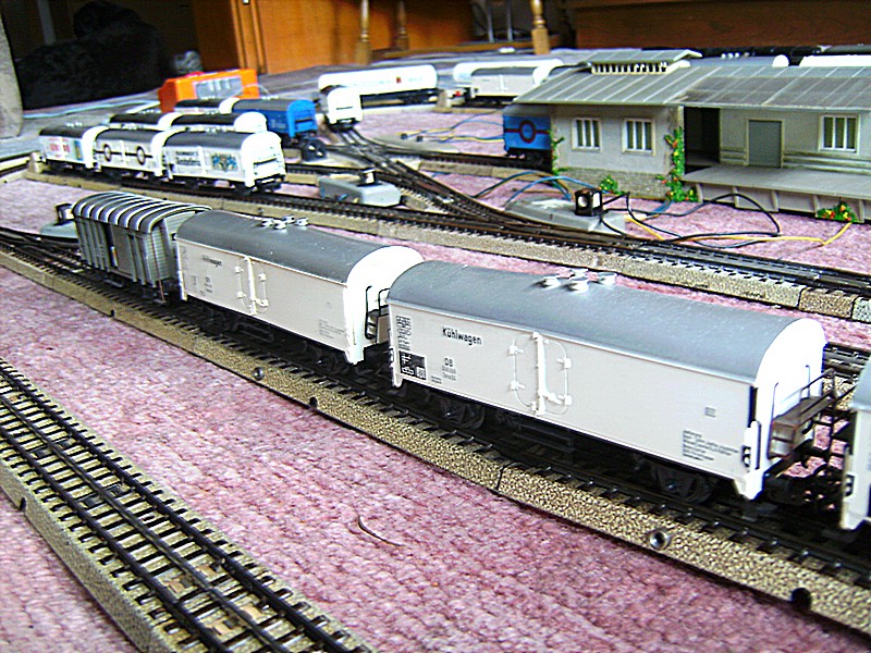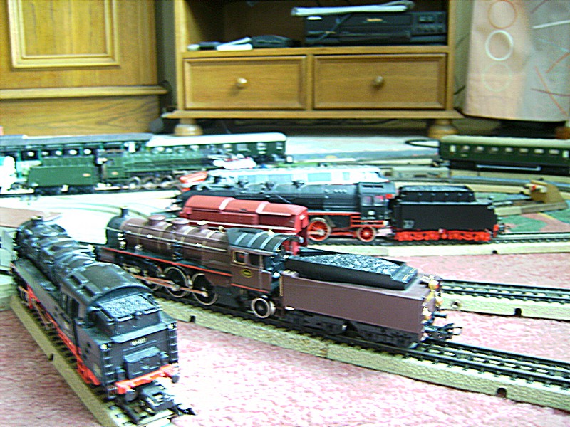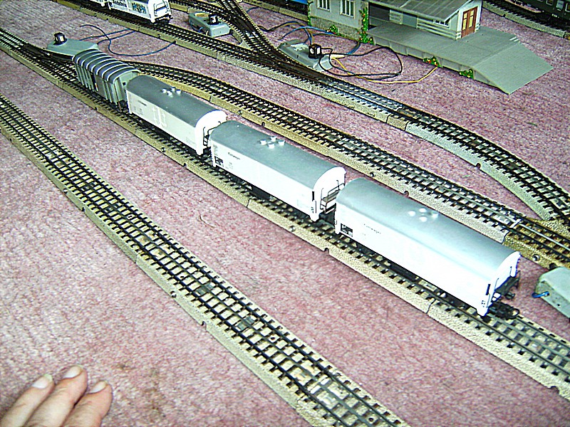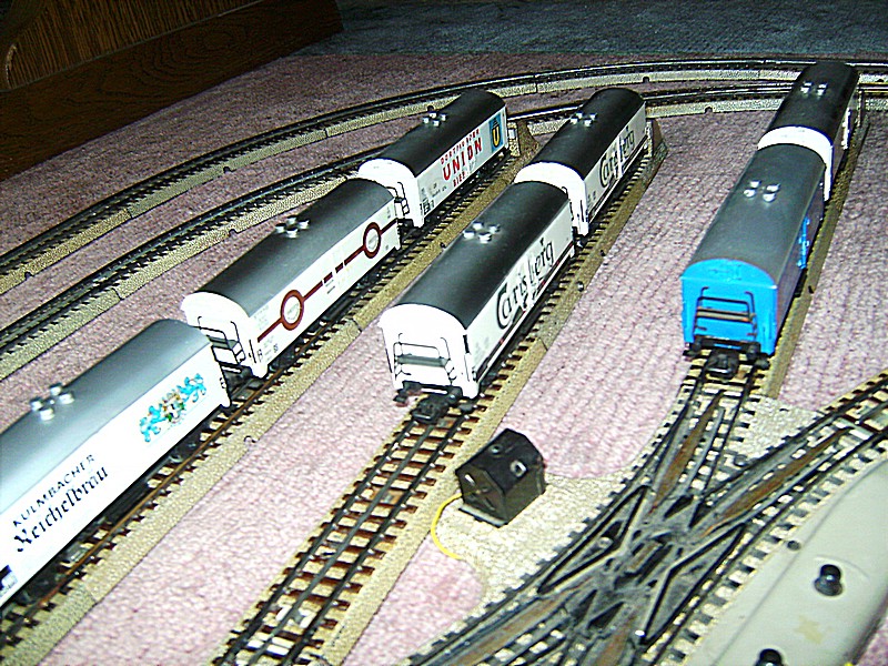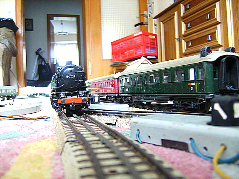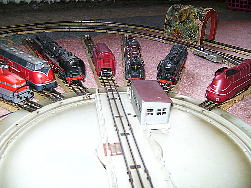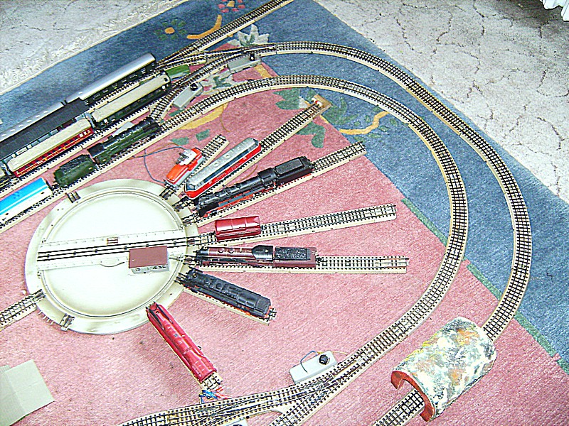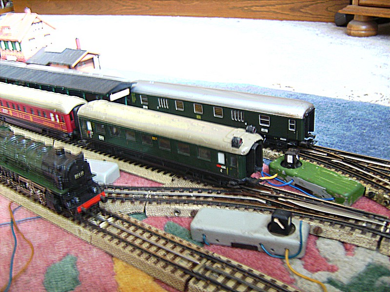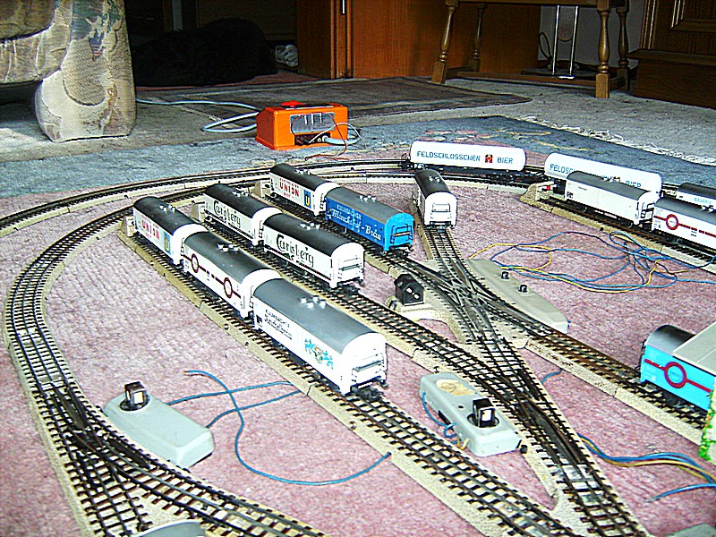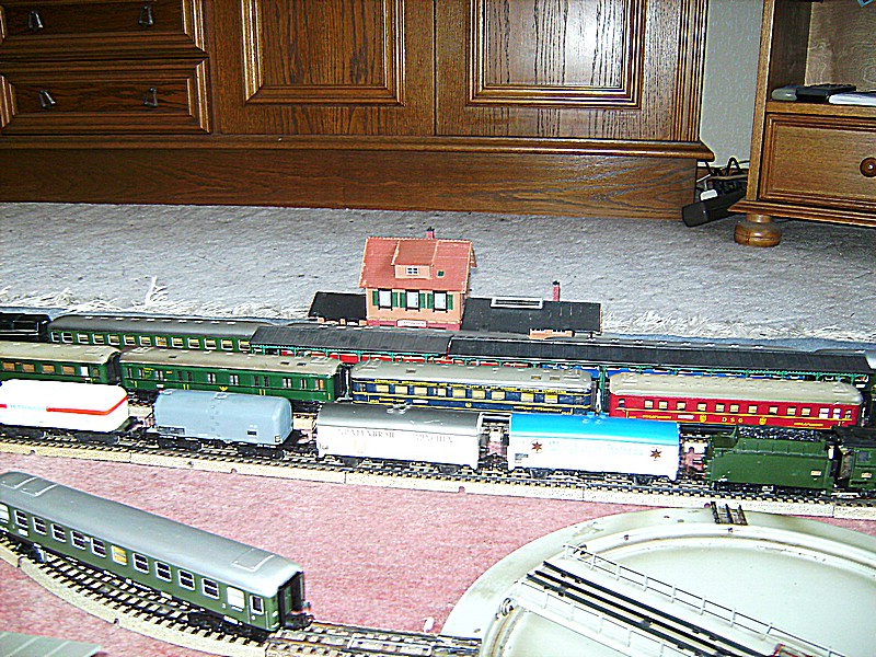 Heute morgen habe ich meine geplante Nostalgie Anlage zum 3. Mal auf dem Teppich im Wohnzimmer aufgebaut. Dieses Mal aber so wie sie einmal werden soll. Es fehlen nur noch wenige Prellböcke und der Lokschuppen, der mir aber im Moment noch zu teuer ist. Es soll natürlich auch der ganz alte sein , also nicht der graue sondern der Beige mit blauem Rand und blauen Toren. Leider gehen gerade bei diesem Schuppen die Preise, nicht nur für gute Exemplare, sehr hoch und das sitzt im Moment nun mal nicht dran. Aber es werden auch wieder bessere Zeiten kommen und dann werde ich bei einem guten Preis zuschlagen.