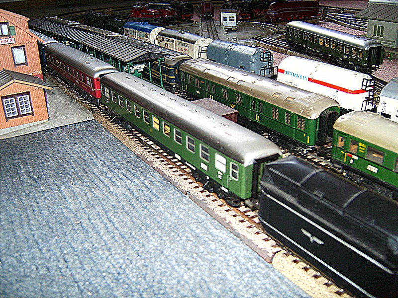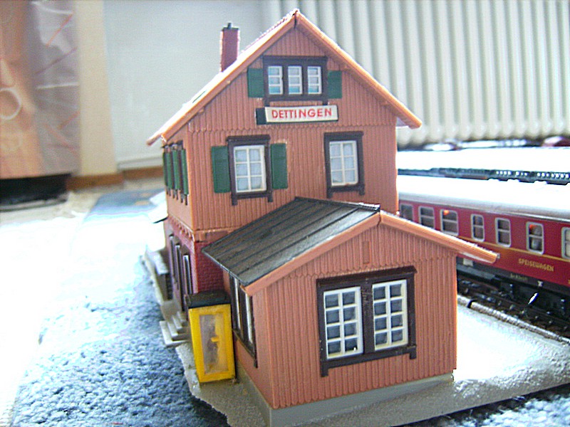 Die Bilder zeigen z.B. den Bahnhof Dettingen und Bahnsteige. Beides passt zwar nicht direkt in die Zeit aber die sind auch schon über 20 Jahre alt. Ich werde sehen ob ich , natürlich günstig, noch etwas bekomme das aus den 50er / 60er Jahren stammt. Erst mit Wagen und Loks gefüllt macht diese an sich kleine Anlage doch etwas her wie ich meine.