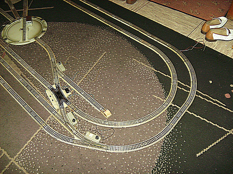 Heute habe ich einmal zur Probe meine geplante Nostalgie Anlage auf dem Teppich aufgebaut, um zu sehen was mir noch an Schienen fehlt. Dabei hat sich auch rausgestellt das die Drehscheibe nicht so eingebaut werden kann wie es der Plan zeigt.