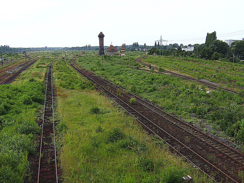 ![]() hier Richtung Düsseldorf rechts hinten ist noch ein Wasserturm und ein Stellwerk ohne Gleise zu erkennen |
