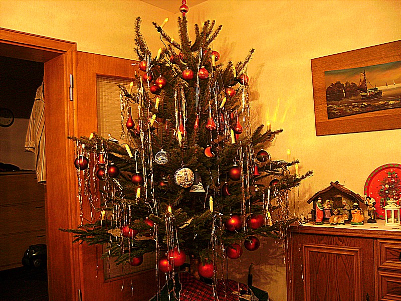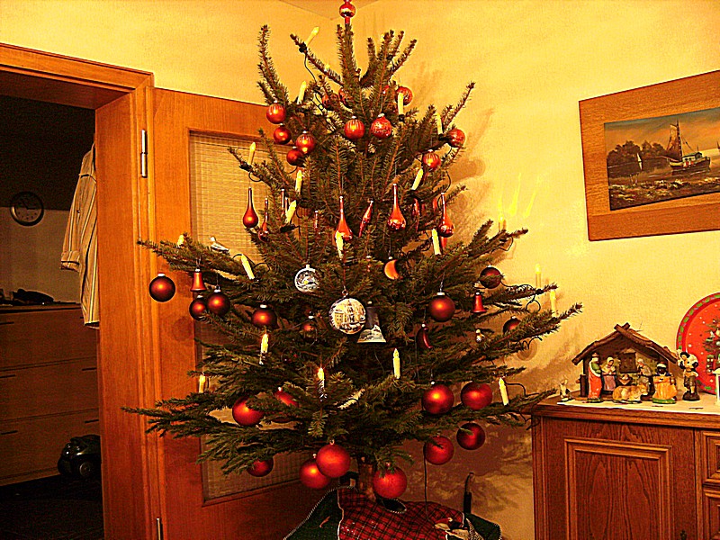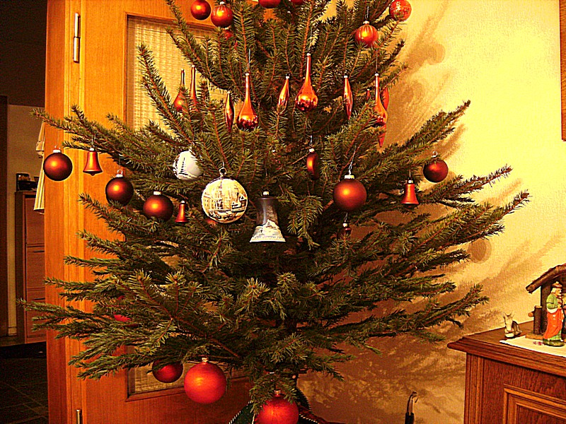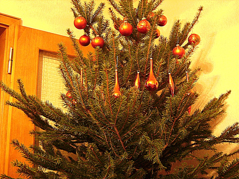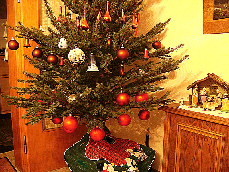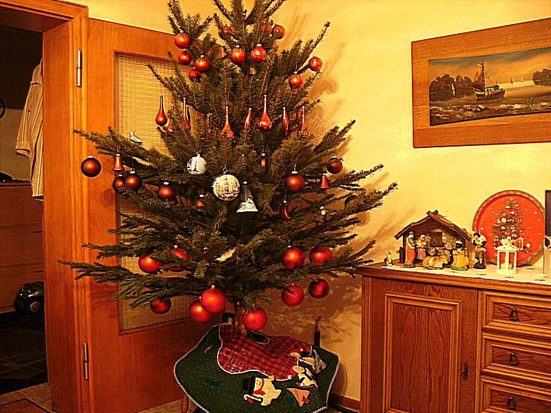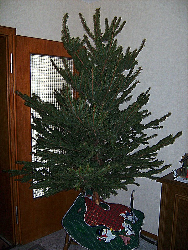 Vor einigen Tagen haben meine Frau und ich unseren Weihnachtsbaum gekauft und ihn erst einmal auf dem Balkon in einen Eimer Wasser gestellt, doch das war nicht so gut, denn das Wasser im Eimer ist bei Minus 6 Grad gefroren und wir bekamen den Baum nicht aus dem Eimer raus. Also wurde der Baum gestern in die Diele gestellt und dann heißes Wasser in den Eimer gegossen. Nach einiger Zeit, das Eis war immer noch nicht geschmolzen, wollte mein Sohn den Baum ins Badezimmer bringen um dort in der Wanne mit heißem Wasser das Eis auftauen. Er hob den Baum an und der löste sich aus dem Eimer. Vor lauter Schreck stellte er den wieder zurück und hat dabei eine Riesen Überschwemmung gemacht. Zum Glück hatte ich sofort einen Aufnehmer parat um das schlimmste zu verhindern. Mein Sohn hat dann nach dem ersten Schreck den Baum - ohne Eimer - ins Bad gebracht und dort mit heißem Wasser das restliche Eis entfernt.