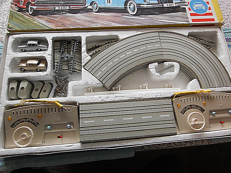 Als ich heute die Packung bekommen habe wurde die natürlich sofort geöffnet und es lachten ich alte Sachen an die fast im Neuzustand waren, ja ich möchte fast sagen das die Teile wohl nie benutzt wurden. So sind die Kabel an der Anschlußfahrbahn noch genau so gewickelt wie sie von Faller geliefert wurden, auch die Fahrpulte haben noch diese Kabelwicklung und auch die sehen neu aus, Nur sind die Teile ganz leicht angestaubt, wie man auf den Bildern sehen kann.