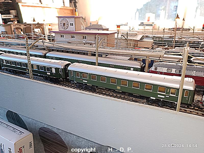 Im 2. Teil meiner Serie " Fernreiseverkehr im Wandel der Zeit" geht es heute mit Loks der Baureihen V 200, E 10/110, E 40 / 140 E 41 / 141, E 94, BR 151, V 160 / 215 weiter. Die Loks stammen von den Firmen Märklin, Roco und Piko. Das Wagenmaterial von Märklin und Primex.