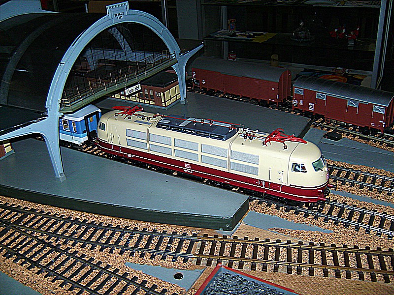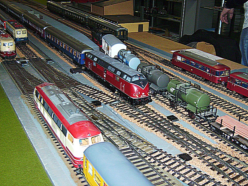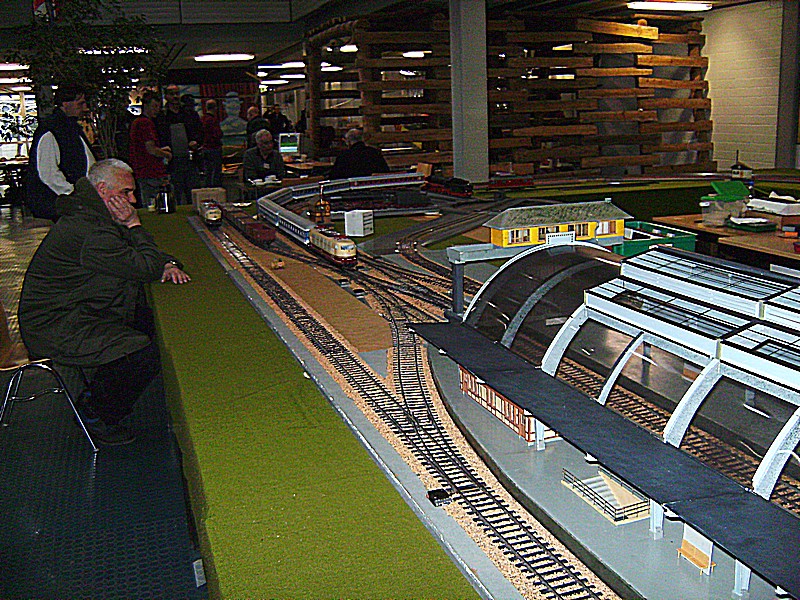 Beginnen möchte ich natürlich mit der Modellbahn und da mit der großen Spur 1 Anlage der Eisenbahn-Modellbau-Club Gelsenkirchen-Buer-Resse 1980 e.V. Diese Modulanlage wird oft auf Ausstellungen gezeigt. Einige Loks sind Eigenbauten, so z.B. die BR 19 um hier nur eine von vielen zu nennen.