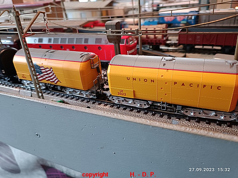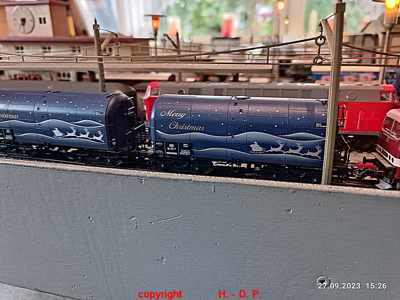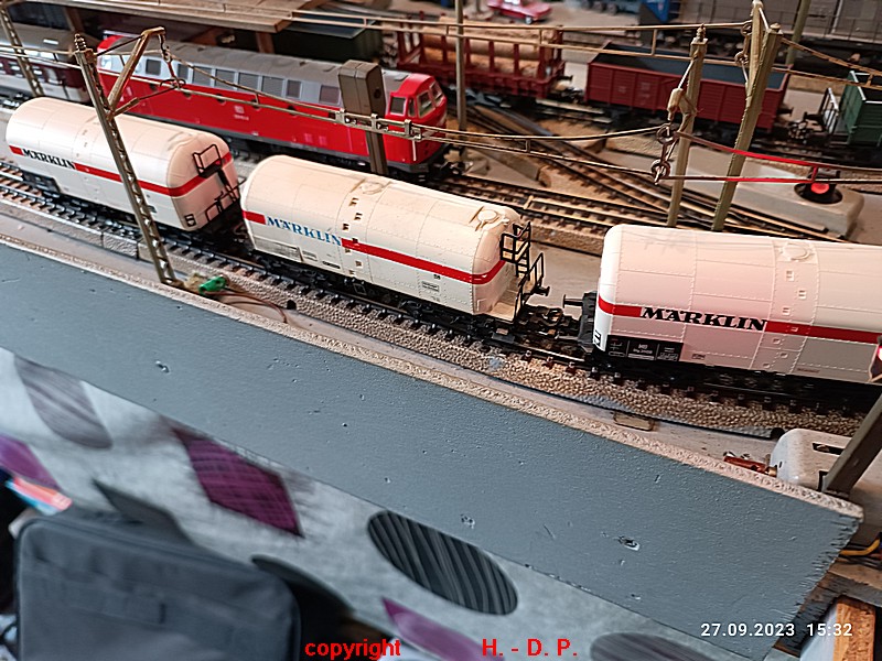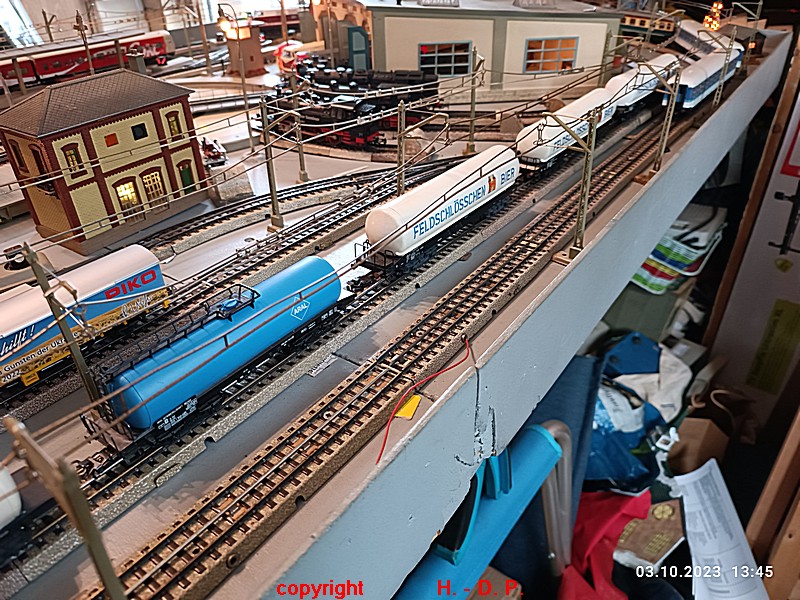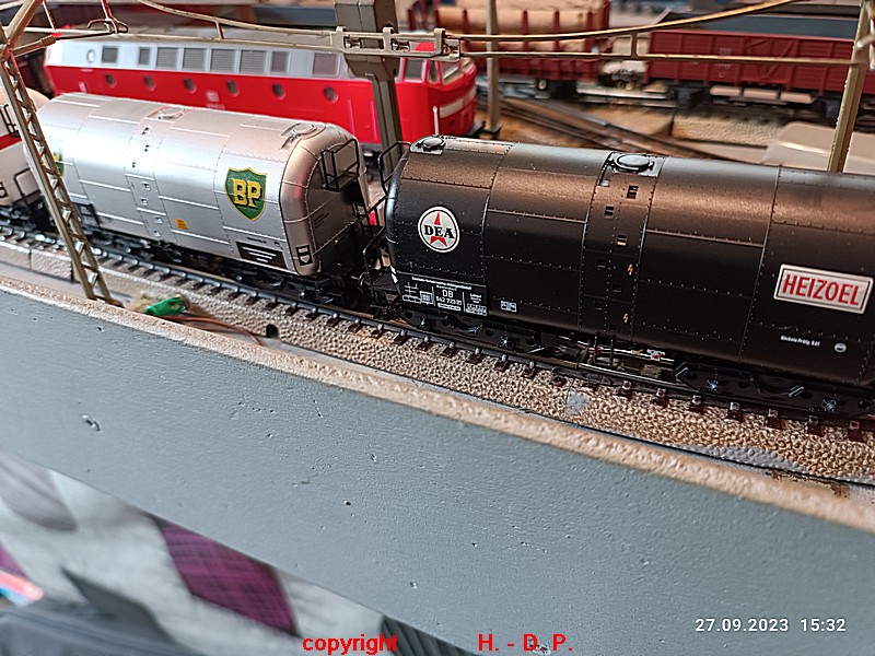 Bei den Güterwagen kamen auch wieder meine absoluten Lieblings Wagen, die Schwerölwagen zum Einsatz, denn da gab es vor einiger Zeit einen Neuzugang und der Zug besteht jetzt aus insgesamt 12 Wagen, wovon aber nur 11 zu sehen sind. Der 12. Wagen, ein 4621 in grau, habe ich leider noch nicht gefunden.