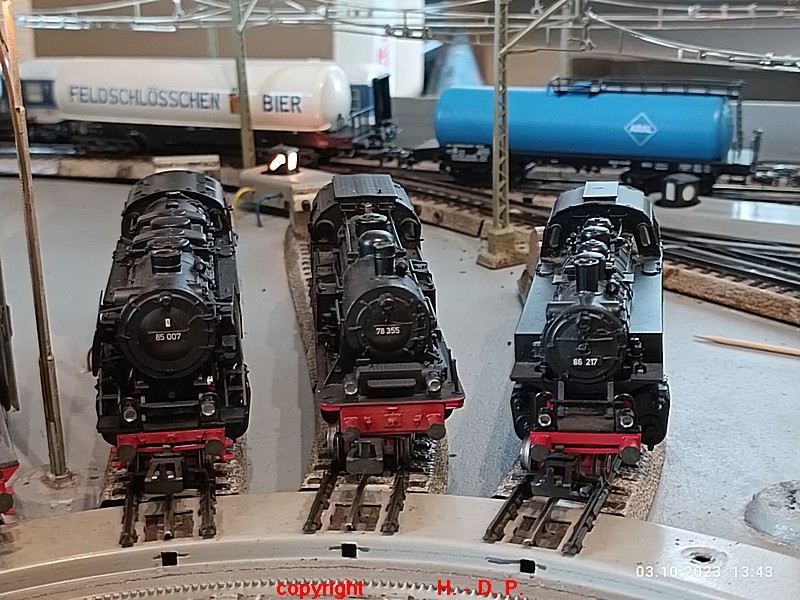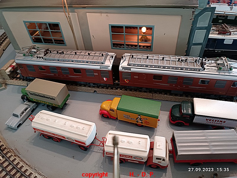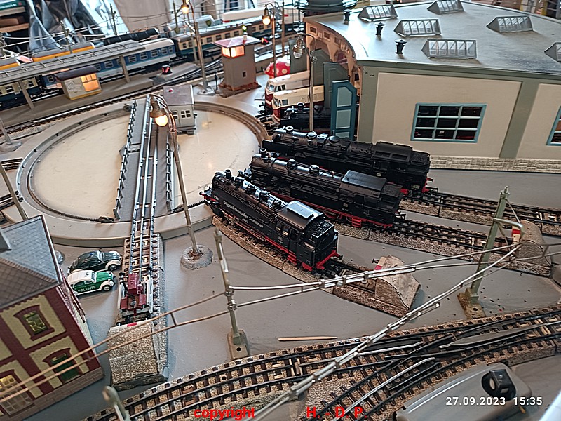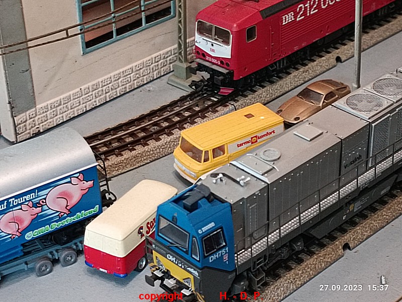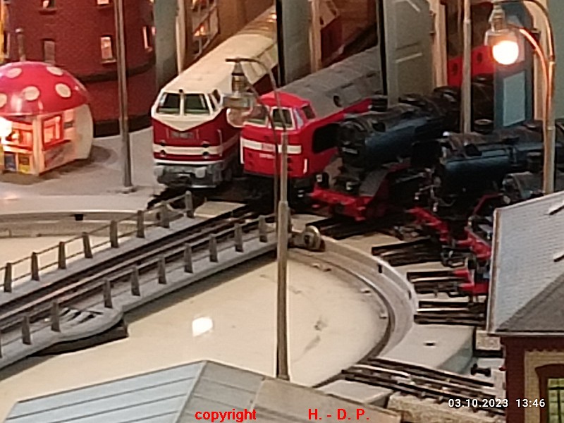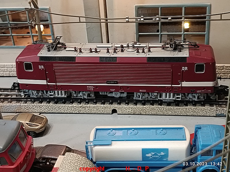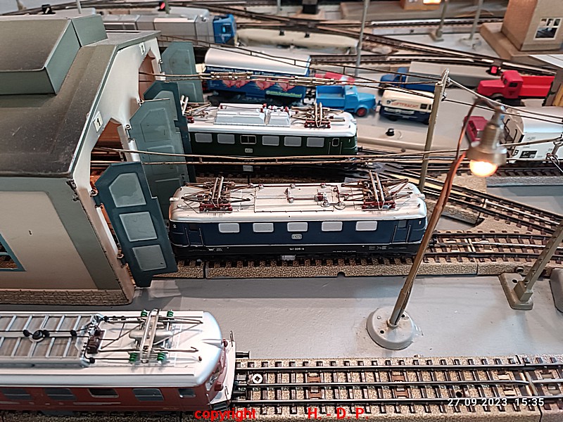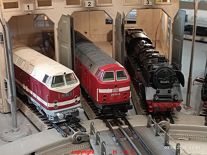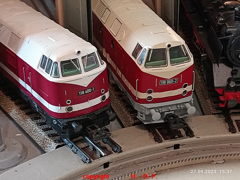 Die Spieltage über die ich heute berichten möchte standen unter dem Motto " Ex DDR und Russen Power " und es fuhren auch nur die Loks die dem Motto entsprachen. Die Loks stammten von den Firmen Märklin und Piko und die Wagen waren von den Firmen Hag und Märklin. In Ermangelung von DR Personen - Schnellzug Wagen Wagen habe ich natürlich Wagen der DB benutzt, denn Personenwagen der R haben mich an sich nie wirklich interessiert, was bei Loks doch anders war.