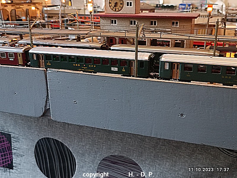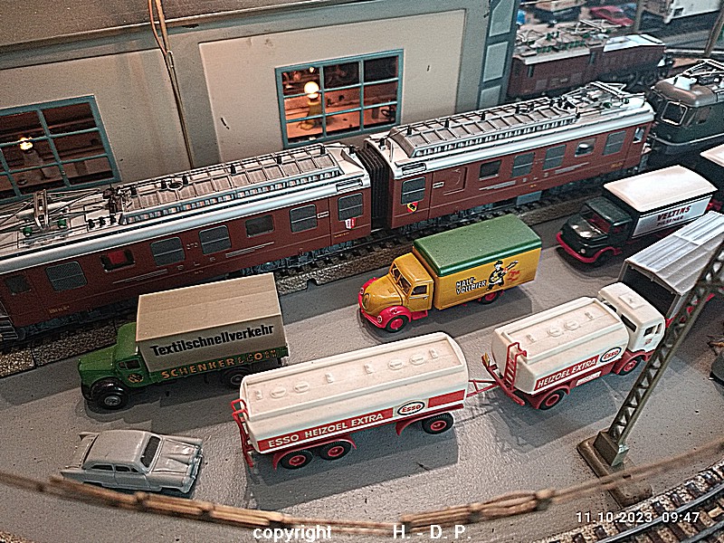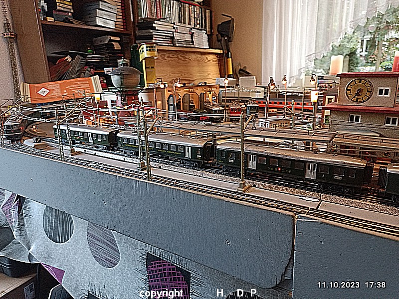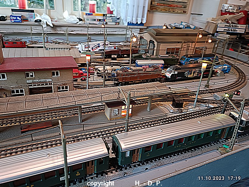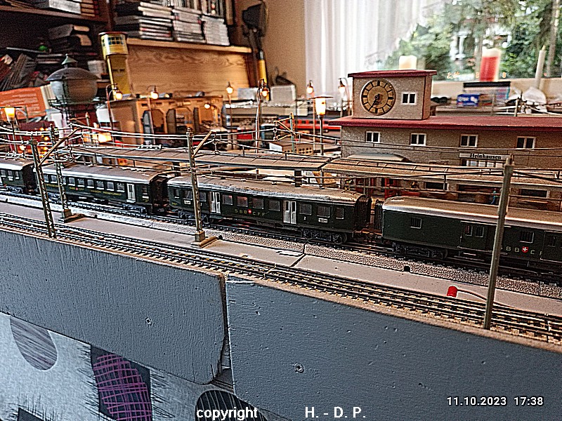 Die Loks stammen von den Firmen Märklin und Hag und von diesen beiden Firmen stammten auch alle Wagen.