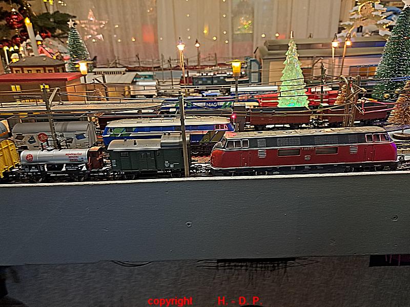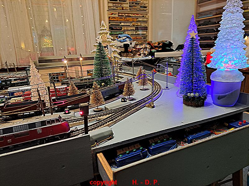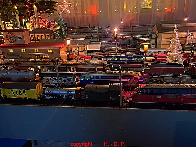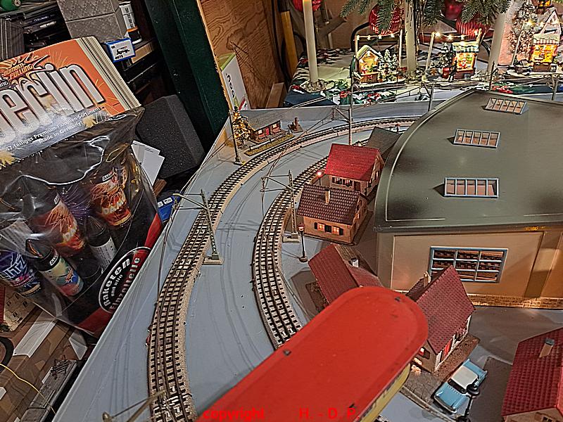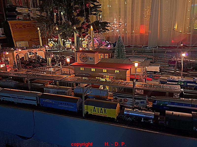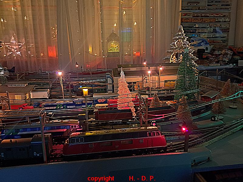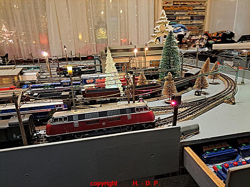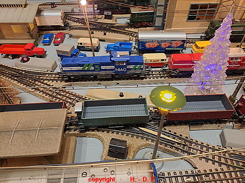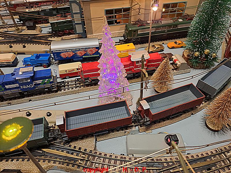 Zu sehen sind meine Märklin Insider Wagen und Gußwagen der Firma Hag. Natürlich wurde die Weihnachtsbeleuchtung nur für die Bilder eingeschaltet und auch die Rollladen wurden runter gelassen, denn erst am Samstag vor dem 1. Advent wird die Beleuchtung im Spielzimmer, Kinderzimmer und Wohnzimmer eingeschaltet, das ist bei uns so Tradition solange ich zurück denken kann.