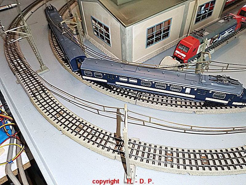 da waren auf der Anlage unterwegs ein Kühlwagen Zug gezogen von einem Piko Taurus, ein Bananenwagen Zug gezogen auch von einem Piko Taurus und die Wagen beider Züge haben sich gefruet über die poko Lok und die haben nicht die Nase gerümpft so wie einige andere Leute. Als Eilzug war auch noch der Märklin "Bamberger" der Zugpackung 26541