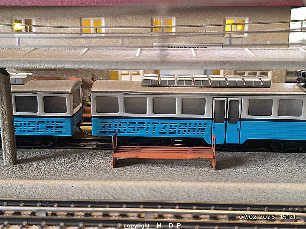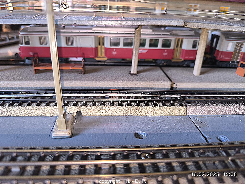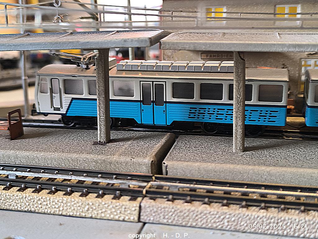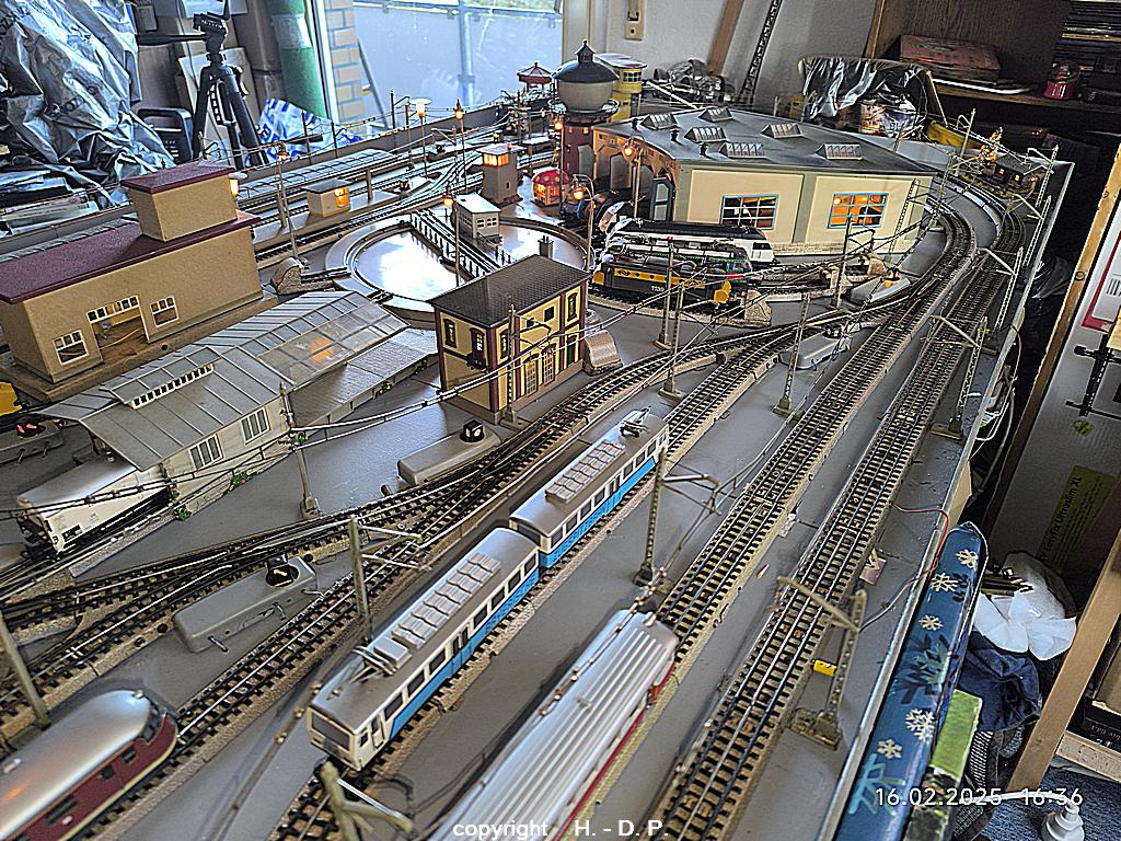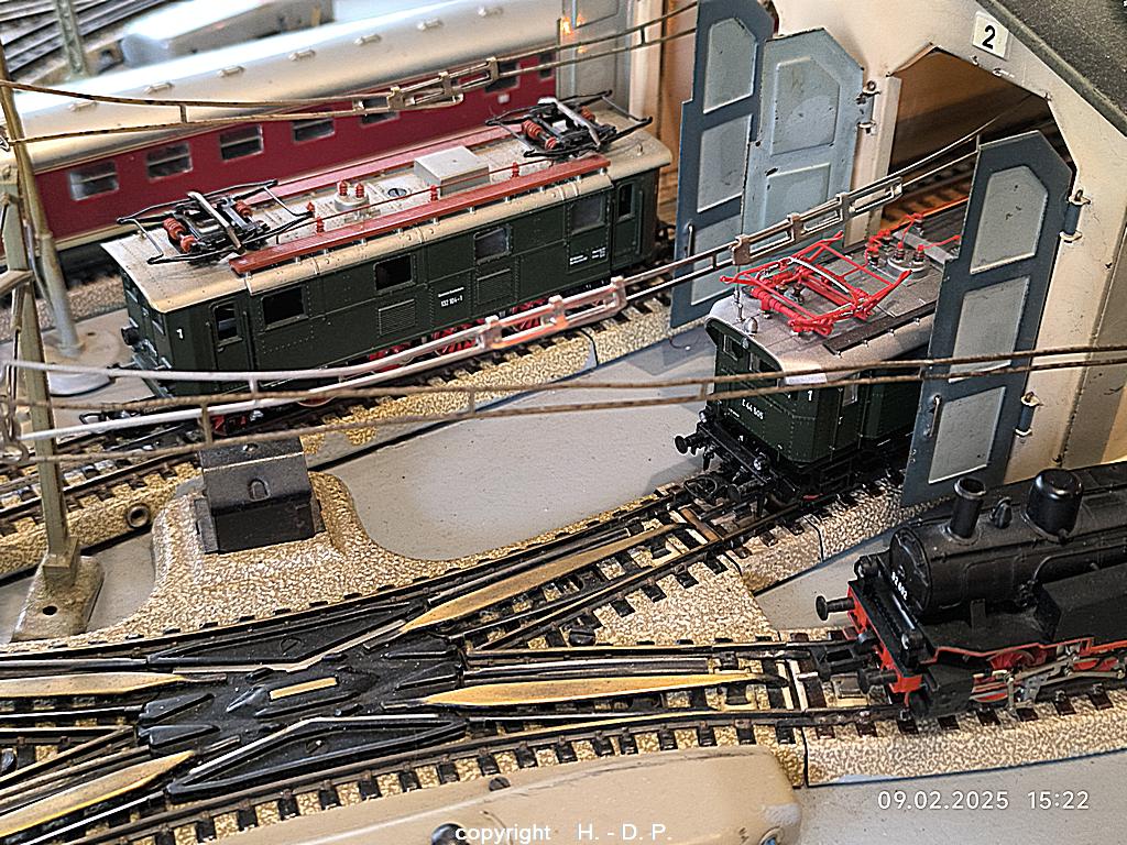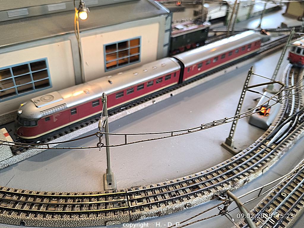 Von der Firma Hag, ein roter Pfeil und ein Trieb - mit Steuerwagen, von Märklin ein roter Pfeil, Ein Schienenzeppelin, ein Posttriebwagen der NS und von Primex die Bayerische Zugspitzbahn. In den Lokschuppen gaben sich 5 Schweizer E - Loks, eine Lok der NS und von der DB 1 x E 44.5 und eine E 32 die Ehre