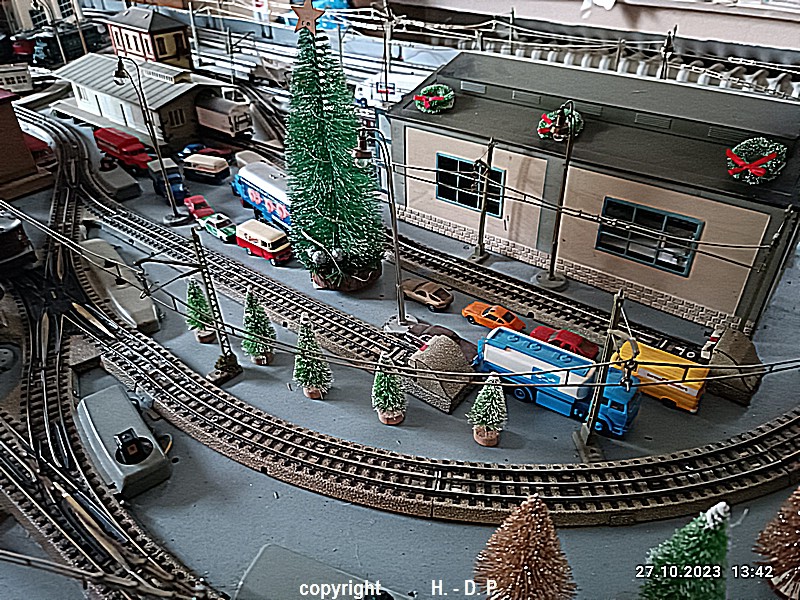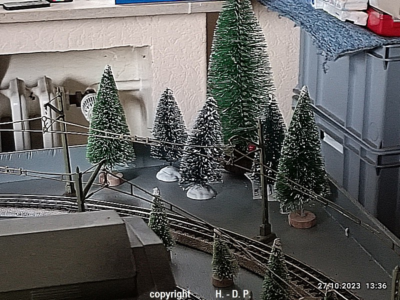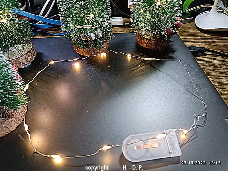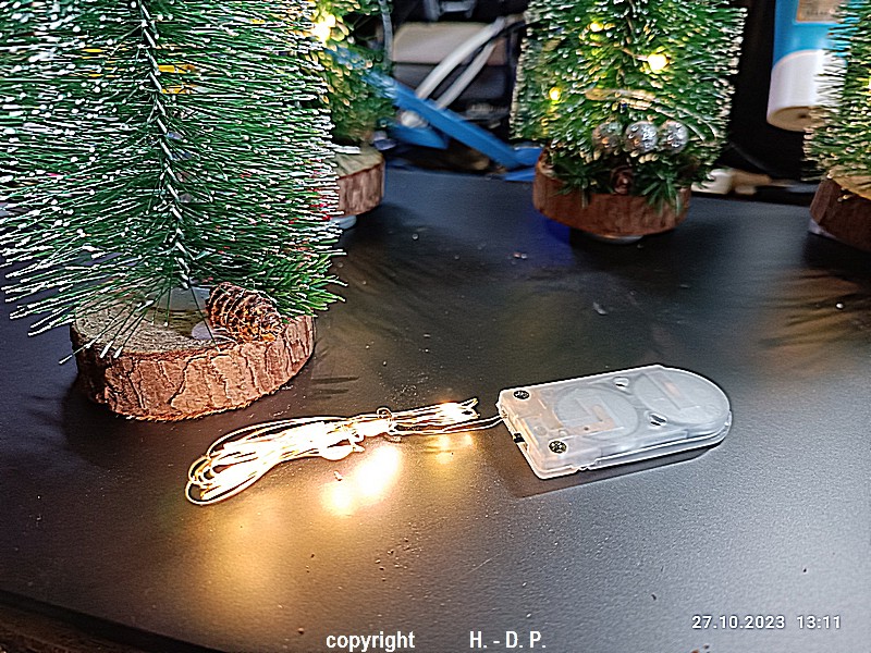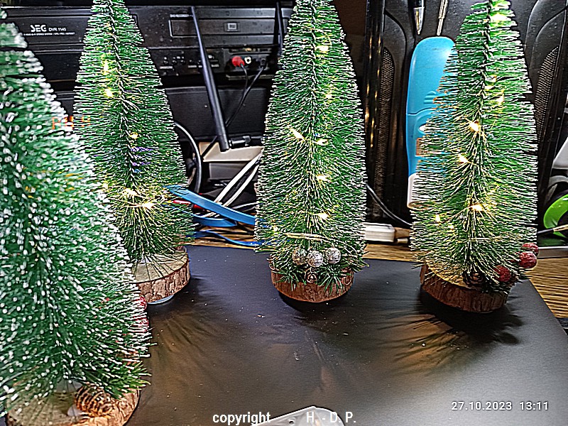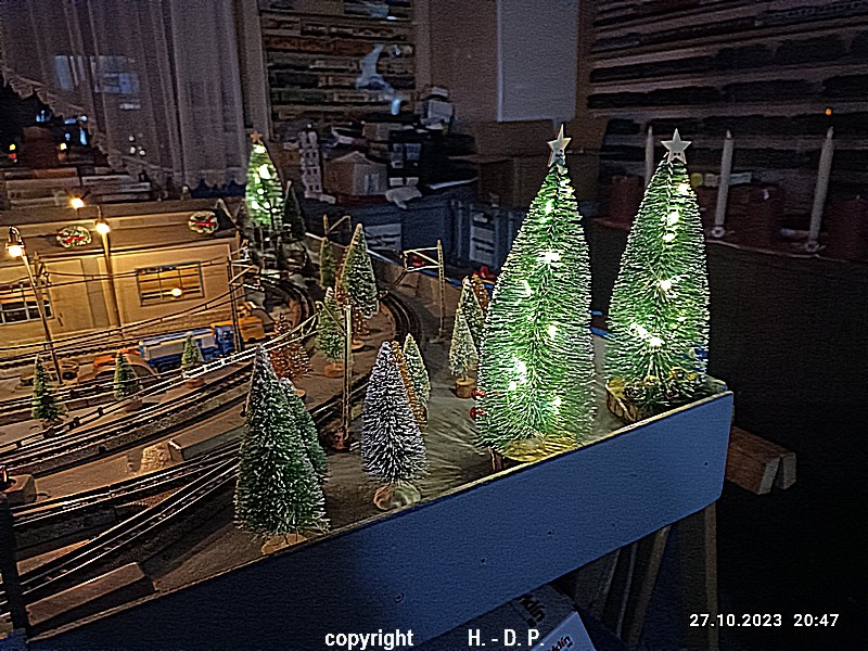 Die LED Ketten waren recht schnell an den 4 Tannen angebracht und dann wurden die mit vielen anderen Deko Tannen auf die Anlage gestellt.