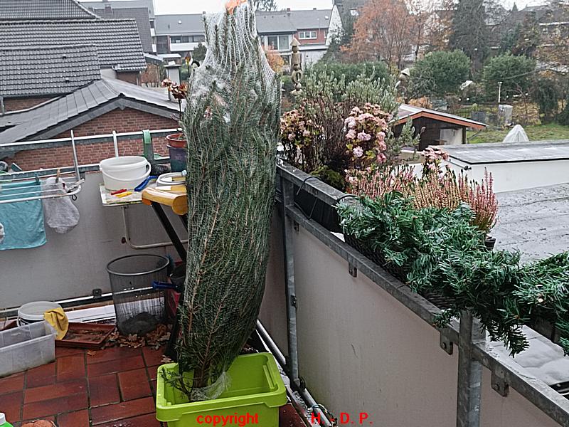 Wir waren schon soweit das wir doch eine von uns nicht geliebte Nordmann Tanne kaufen wollten, aber es kam zum Glück doch etwas anders. Ich benötigte noch einige Haken um Kugeln am Baum zu befestigen und so kamen wir nach Hornbach. Ich hatte da schon vor einigen Tagen die Webseite besucht und dort keine Blaufichten gefunden, nur Nordmann Tannen, Ich habe mich dann bei Hornbach auf die Suche nach den Kugelhaken gemacht und Frauchen ging auf das Freigelände um sich da Nordmann Tannen anzusehen. Ich hatte die Haken auch gerade gefunden als Fauchen zurück kam und sagte das doch Blaufichten vorhanden wären und natürlich sind wir dann wieder auf das Freigelände gegangen und haben gleich 4 Bäume von 2 m + gefunden. Drei dieser Bäume waren allerdings unten viel zu breit, aber einer war schlank und auch ca. 2,10 m hoch und den haben wir dann auch sofort gekauft. Überrascht waren wir vom Preis, denn die Größe von 1,70 - 2,10 m sollte nur 17,99 € kosten und dieser Preis war auch für die an sich viel teureren Nordmann Tannen gültig.