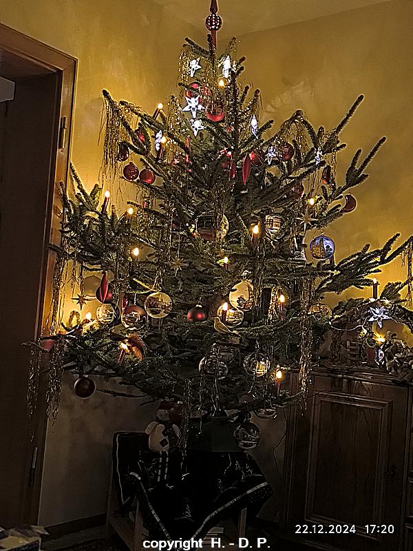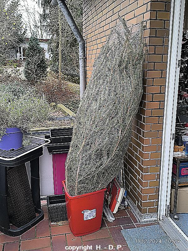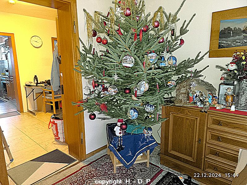 normal haben wir unseren Baum in jedem Jahr am 17.12 in die Diele geholt damit er Zeit hat sich ohne Netz auszuhängen, doch in diesem Jahr war es  leider anders, denn am 17.12 mußten wir unsere treue Begleiterin Lady im Alter von 19 Jahren einschläfern lassen und danach stand uns nicht mehr der Sinn nach Weihnachten und Weihnachtsbaum. Da der Baum allerdings nun mal da wr haben wir den dann am 20.12. in die Diele gestellt, vom Netz befreit und dann bis  zum 22.12. stehen lassen.