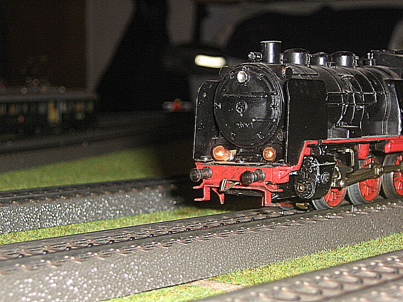 Leider habe ich kein altes M-Gleis mehr, so das diese Fahrt auf dem neuen C-Gleis gemacht werden mußte. Der Sound war trotzdem recht gut und das Geräusch der Lok ließ Kindheitsträume wieder wach werden. Die Lok RM 800 hatte jetzt ca. 25 Jahre in meiner Vitrine gestanden und sie lief sofort und in meiner Diele zog der altbekannte Duft von Oel wieder auf.