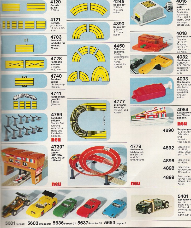 Neu im Modelljahr 1976/77 waren im racing Bereich zwei neue Startpackungen und zwar die Nummern 3900 und 3902, obwohl diese im Katalog nicht als NEU bezeichnet wurden. Bei den Aurora Autos gab es  6 neue Autos und beim Zubehör z.B. ein Steilwandtrichter