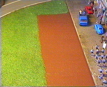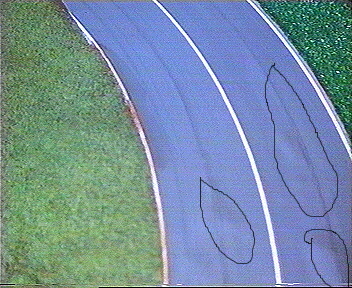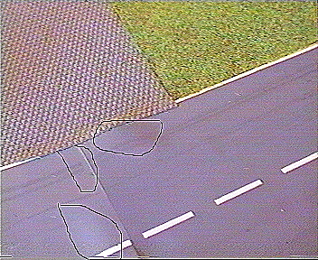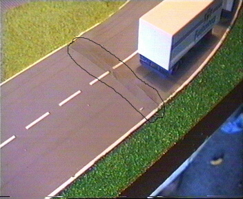 deutlich zu erkennen der Tesastreifen über der Fahrbahn