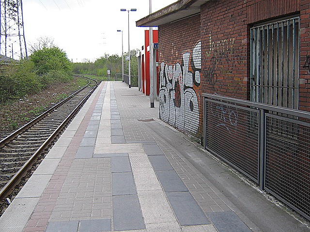 Heute werden auf dieser Strecke moderne Triebwagen vom Typ Talent eingesetzt die immer sehr gut besetzt sind, obwohl die Fahrtzeit bis zum Endpunkt Oberhausen Hbf nur sehr kurz ist. Die Ruine des alten DB Bahnhofs steht leider immer noch und verschandelt die ganze Gegend. Der neue Haltepunkt ist seitlich vom alten Bahnhof angeordnet. Früher wurde hier eine Straße überquert und die Schienen endeten im Eisenbahnhafen. Heute ist die Schranke abgebaut und ein Prellbock aufgestellt.