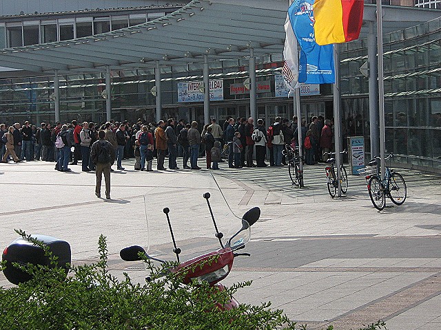 So mit diesen Bildern ist mein Messerundgang der Intermodellbau 2006 beendet. Gegen 11:30 Uhr wurde es in den Hallen so voll, das ich raus mußte, doch was sich draußen abspielte ist nicht zu beschreiben. Einige Bilder davon habe ich noch gemacht. Dann mußten wir 30 Minuten bis zum Auto laufen und dabei erleben die Autoschlange vom Parkplatz bis weit aus Dortmund hinaus ging. Ich glaube das einige wohl erst nach einigen Stunden in die schon sehr volle Halle gehen konnten.