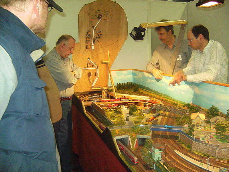 Zu den Anlagen muß ich sagen das die an sich nicht schlecht waren aber es fehlte eine Anlage wo man sagen könnte woh das ist es. Auch gab es sehr viele kleine Anlagen Dioramen zu sehen. Die Anlage des Modellbau Team Köln z.B. hätte der Höhepunkt sein können, wenn dort nur etwas mehr Zugbetrieb zu sehen gewesen wäre. Diese an , sich recht hohe Anlage war wohl für die Firma Bemo gebaut, hatte aber trotz der Größe nur ein Gleis drauf das zu einem Bahnhof in ungefähr Anlagen Mitte führte zu einem kleinen Bahnhof mit Ausweichgleis. es fuhren dort nur zwei Züge und das fand ich persönlich etwas wenig, denn sonst gab es dort nur Landschaft zu sehen, die aber natürlich in hervorragender Qualität gebaut war, so wie man es von den Kölnern gewohnt ist.