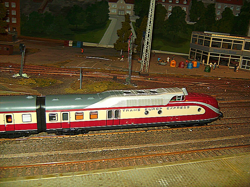 Weiter geht es mit der HO Anlage. Diese Anlage war in weiten Teilen noch nicht fertig, da sie wohl neu aufgebaut werden mußte. Wie ich hörte soll die alte Anlage im Untergrund in den letzten 20 Jahren sehr gelitten haben, so das ein Neuaufbau nötig wurde. Auch wurde die Anlage von analog auf digital umgestellt was natürlich auch nicht ohne Probleme geht. Trotz dieser Schwierigkeiten liefen aber einige Züge und es gab auch schon fertig gestaltete Dinge, wie meine Bilder zeigen werden. Ganz beachtlich aber war eine Zeche die in weiten Zügen fertig war. Auch das BW von Gelsenkirchen-Bismarck war fast fertig aber noch nicht in Betrieb. Gefahren wurde diese Anlage mit Gleichstrom. Auch der Gleisplan war sehr gelungen und man konnte auf Anhieb nicht sehen wie die Züge fuhren. Insgesamt eine klasse Anlage.