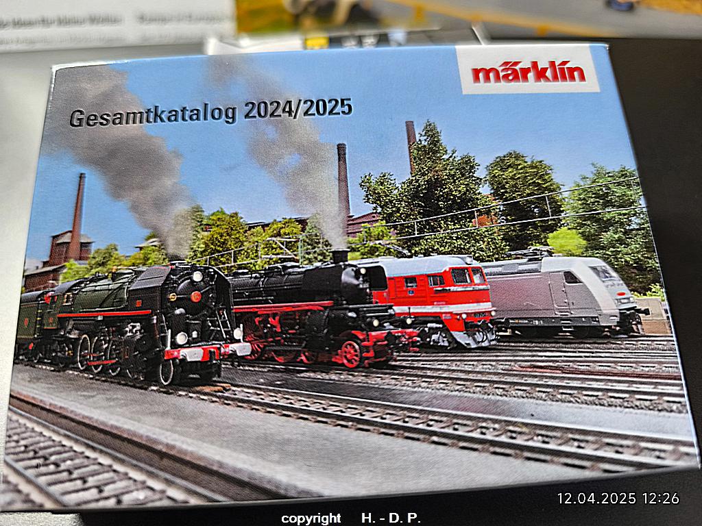 Vor der Halle war es schon sehr voll und als sich die Türen um 8:45 Uhr öffneten strömte alles in die Vorhalle und es bildeten sich nebeneinander 5 lange Schlangen und in einer davon standen auch Jutta und ich. Plötzlich kam einer der Mitarbeiter auf mich zu und sagte mir das es für uns einen anderen Durchgang geben würde da ich mit einem Rolli unterwegs sei und das hat uns doch sehr gefreut. Um 8:55 Uhr durften wir als erste in die Halle 4 eintreten und so war ich auch der erste am Märklinstand um mir mein Insidergeschenk abzuholen. Es ist dieser kleine Notizblock.