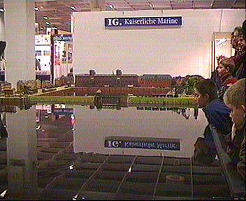 Auf diesem Stand wurde recht eindrucksvoll gezeigt, dass sich Wasser und Modellbahn sehr gut vertragen können. Die Modellboote waren Funkferngesteuert und hinterließen einen sehr guten Eindruck.