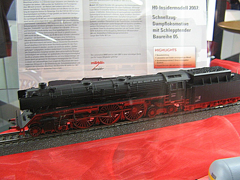 Die Firmen Fleischmann und Märklin/Trix hatten wieder die gößten Stände und auch Firmenanlagen, genau so wie auch Piko nur der Roco Stand war sehr klein im Vergleich zu früheren Jahren wohl aber etwas größer als der Roco Stand in Dortmund in diesem Jahr, obwohl auch hier der Anrang mehr als mäßig war. Man künnte fast annehmen das die Firma Roco so langsam in der Versenkung des Vergessens verschwindet. Zu sehen war ein Rohling des RAM TEE der ansich recht gut aussah. Auch der LGB Stand war kleiner als früher aber sie waren vor Ort. Alle namhaften Firmen waren vertreten, nur Mehano habe ich nicht gefunden waren die überhaupt da ??